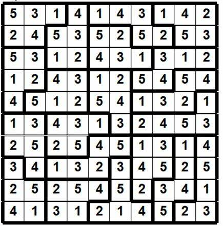 Dit Sudoku type waarin alleen de cijfers 1 tot en met 5 voorkomen kent verschillende varianten. De werkwijze kunt u vinden onder Verklaring.
