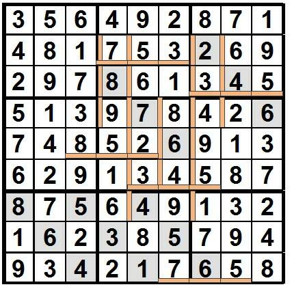 Bij dit type Sukoku is voor een aantal posities de som, vermenigvuldiging of het verschil van de cijfers binnen deze rand bekend. Dit gecombineerd met reeksen maakt het een hele uitdaging om op te lossen!